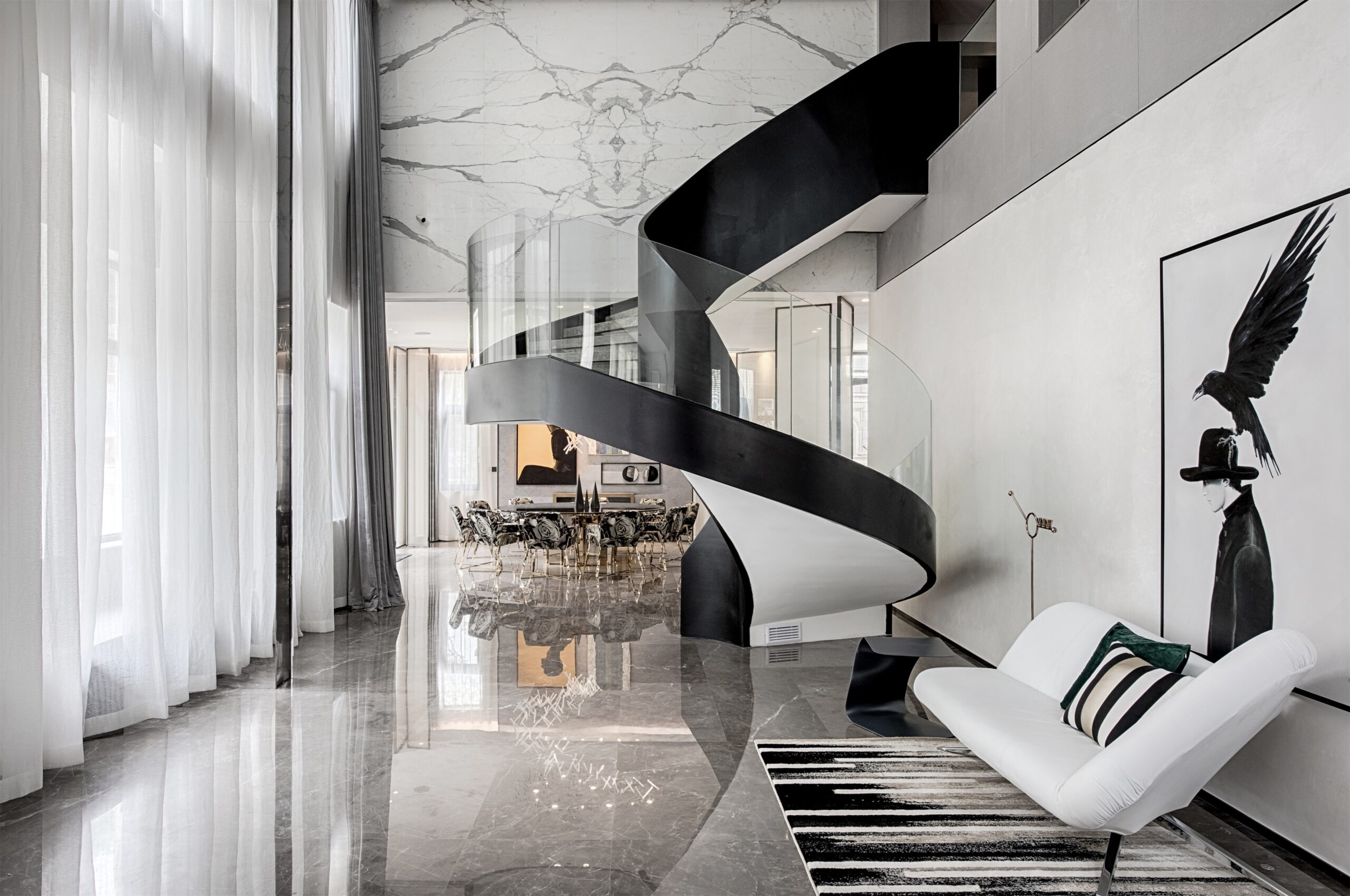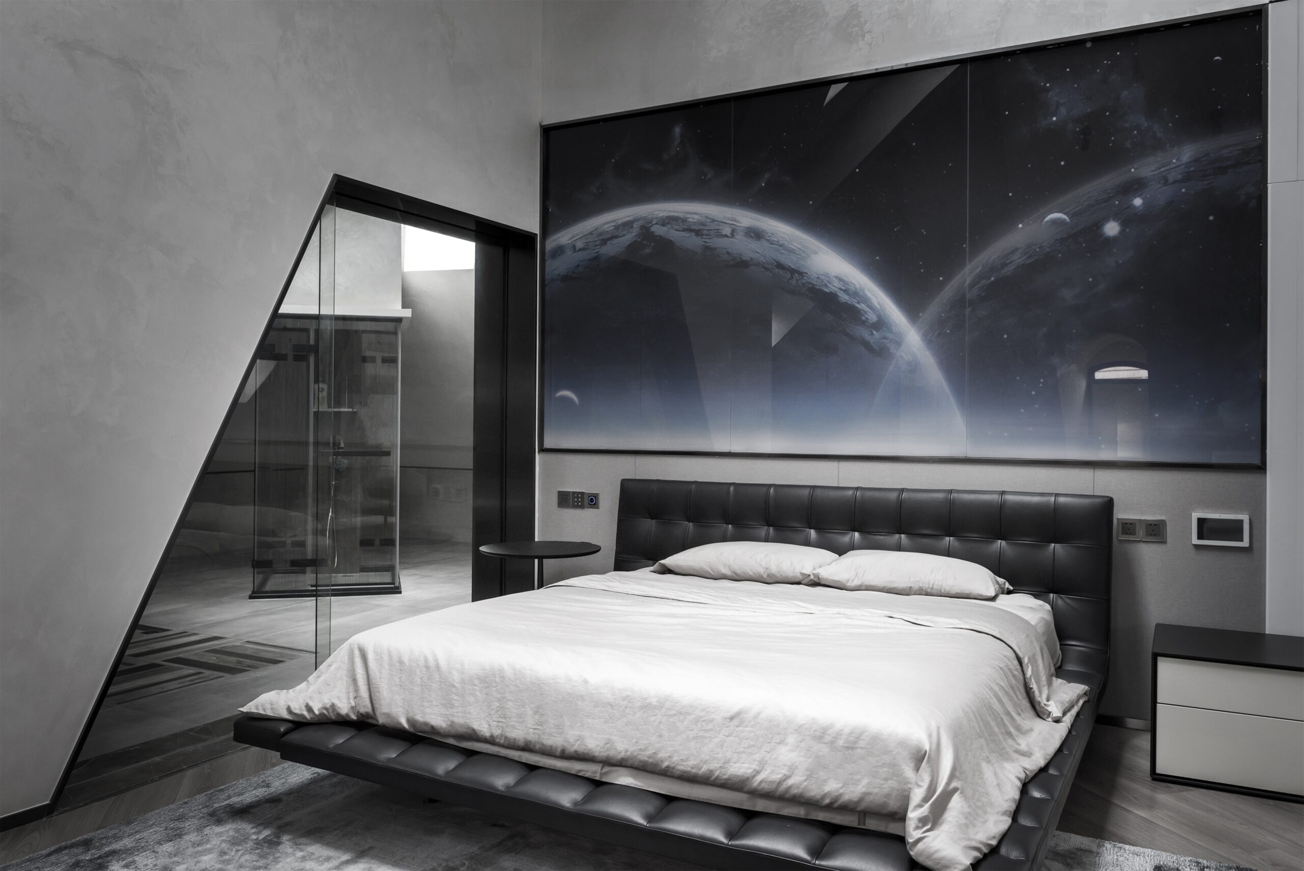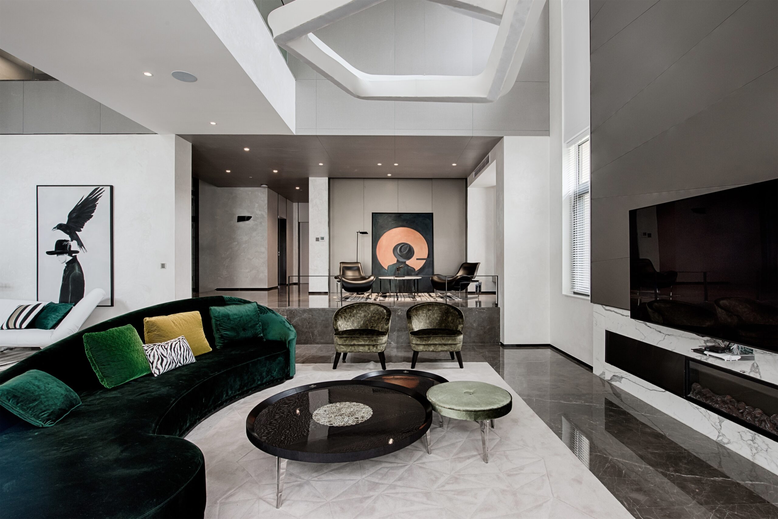 Entering the dark gray environment, the natural luster of the metal connects with the softness of the curved sofa, and the hanging picture in the infinite space in the distance is the opening commentary to the hostess’s freedom. What comes into view with the pace is the momentary freeze of pure collision and brilliance, which is the most exquisite brushwork of this private museum. The encounter of gray and bright colors makes every scattered space an exquisite collection. The gray tone color and free-growing soft decoration become the essence of the collection exhibits. This moment is not only fun, but more pleasant of visual pleasure.