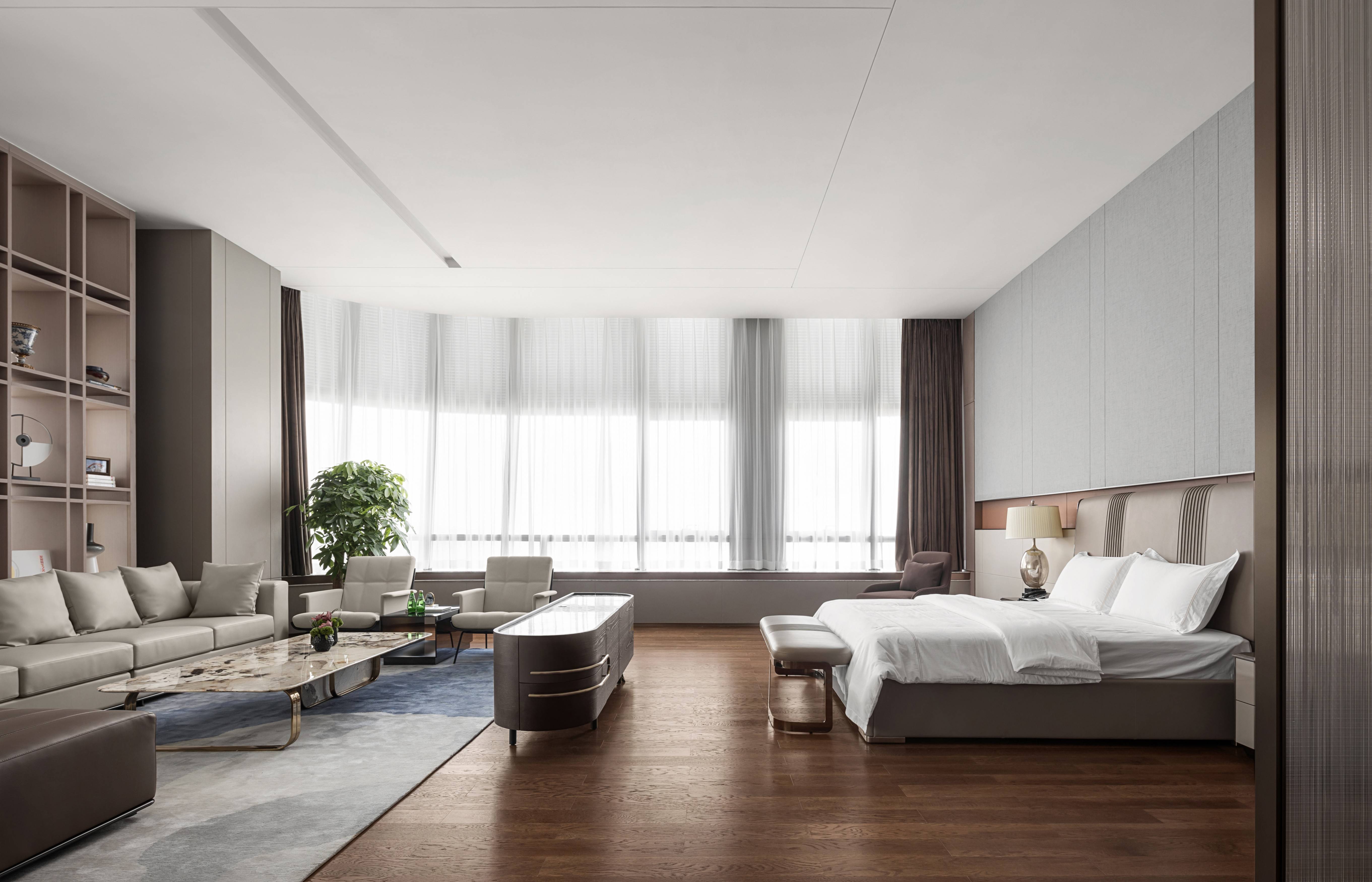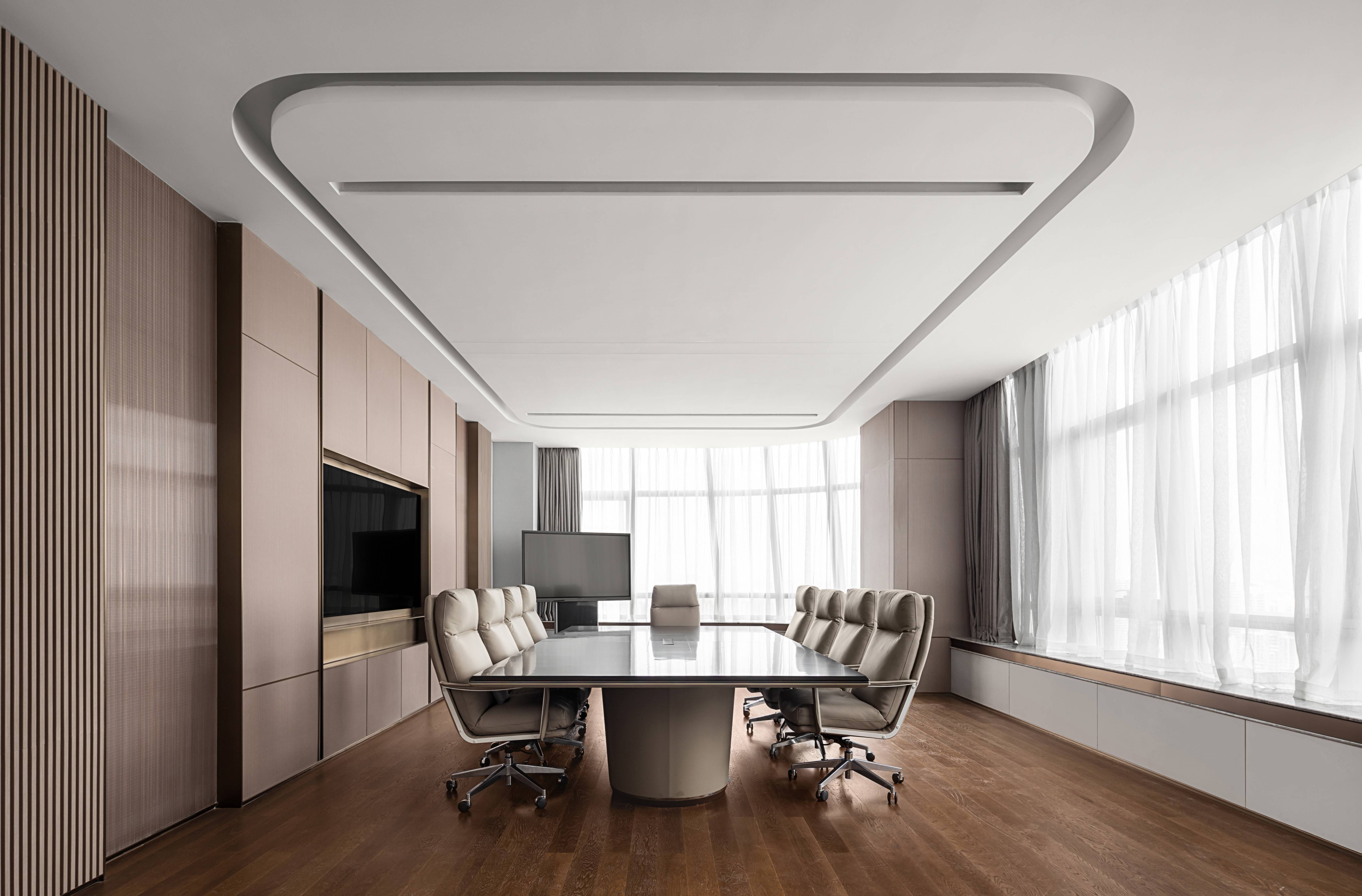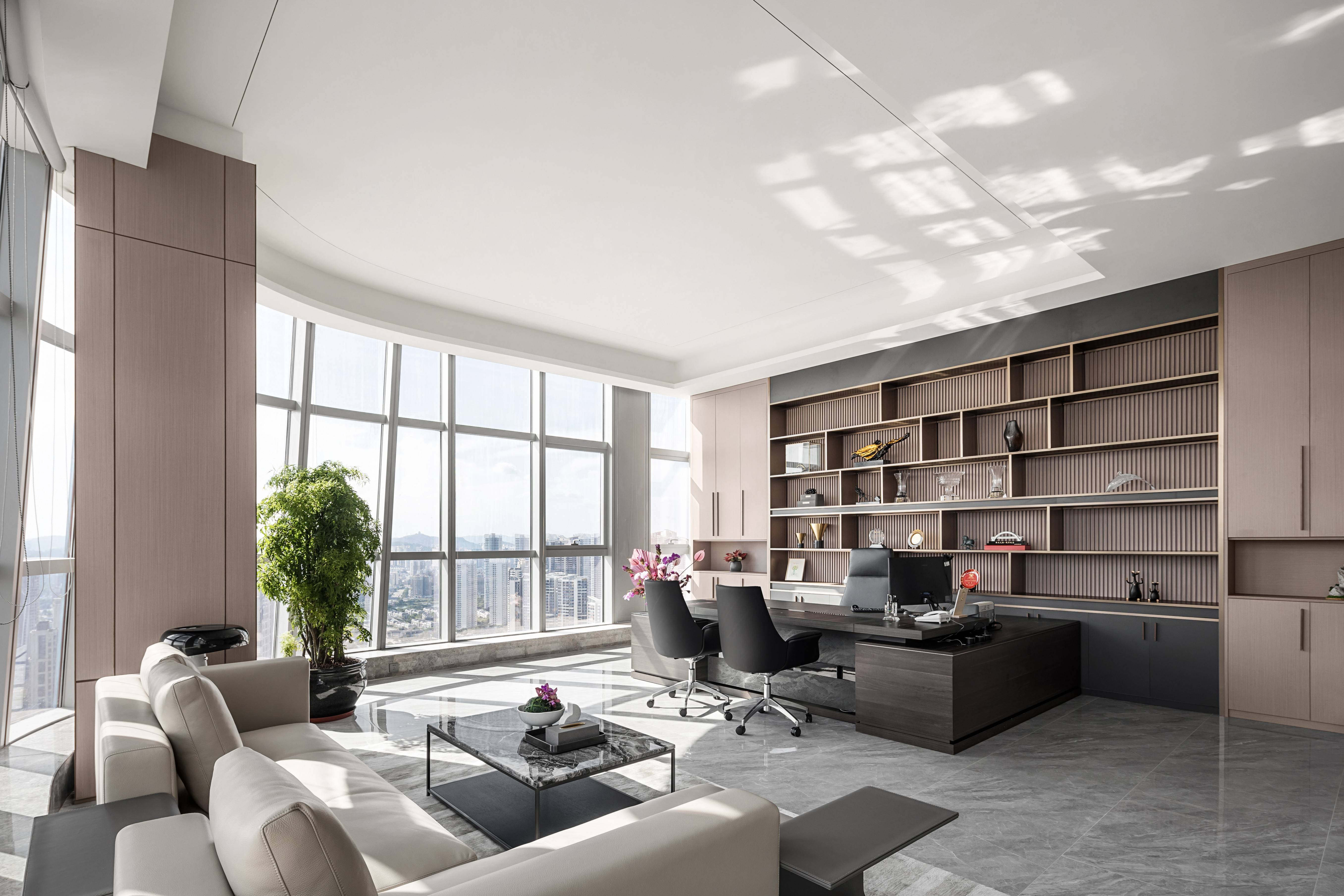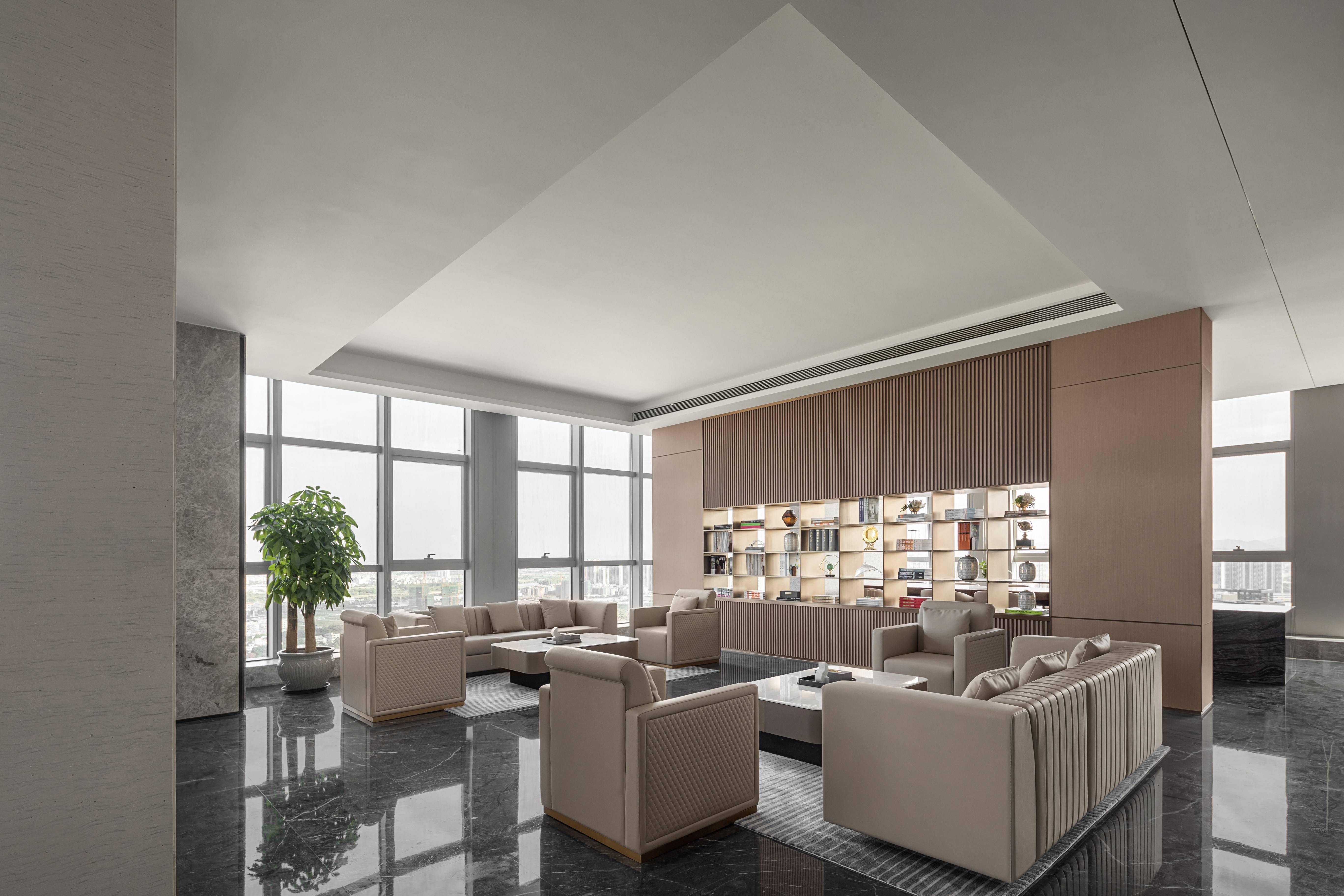 In this modern office tower, Grandmeca created a contemporary business office space with art as the carrier and outlook as the theme for the center of Jinshan Lake.